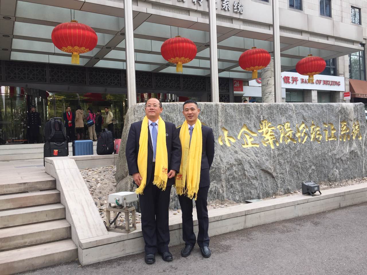 鐘輝董事長(左)與重慶公司胡偉路總經理(右)在全國中小企業股份轉讓系統大廳前合影