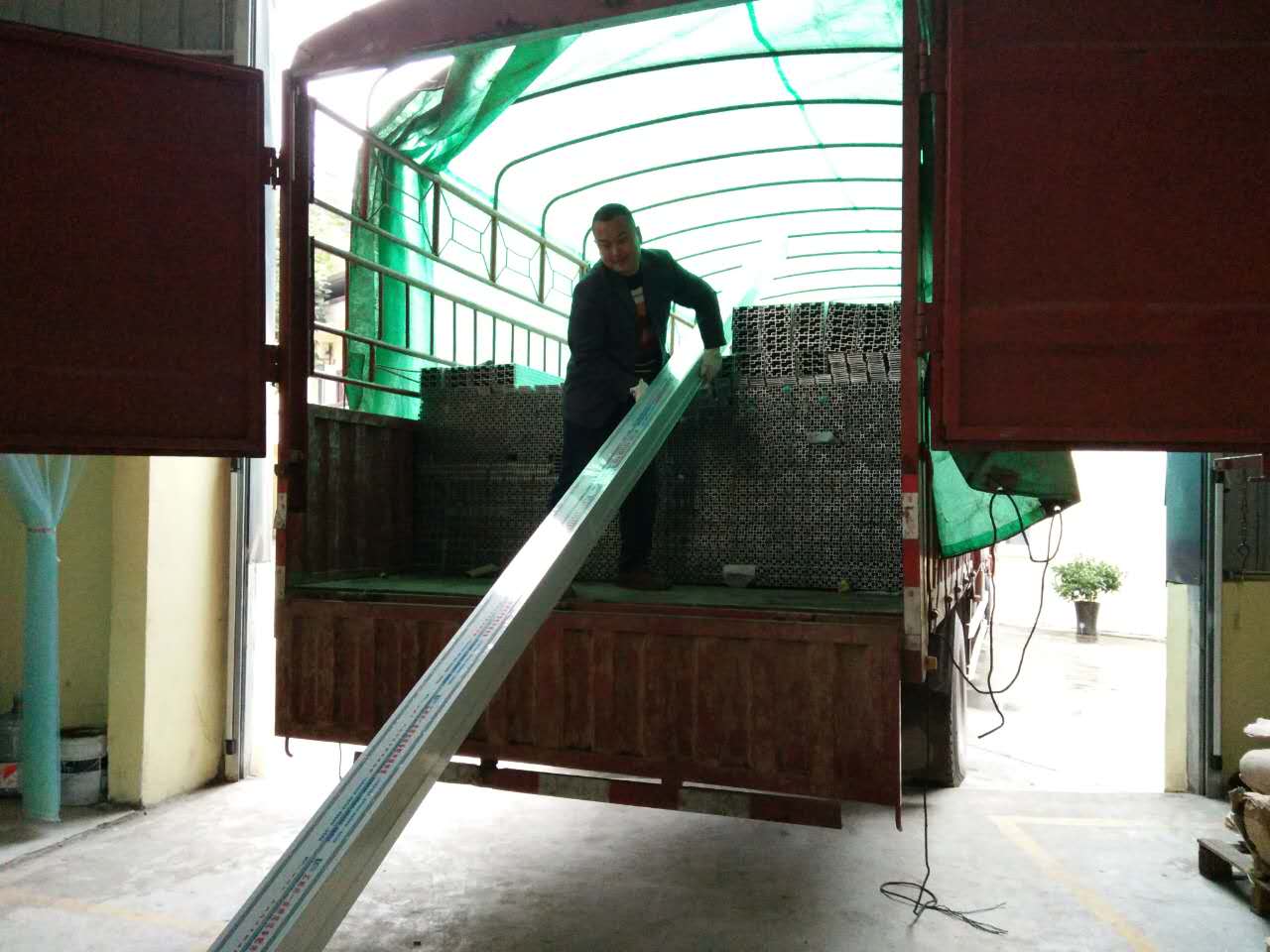 匯利興戰(zhàn)士?jī)扇藶橐唤M合,進(jìn)行鋁型材搬卸