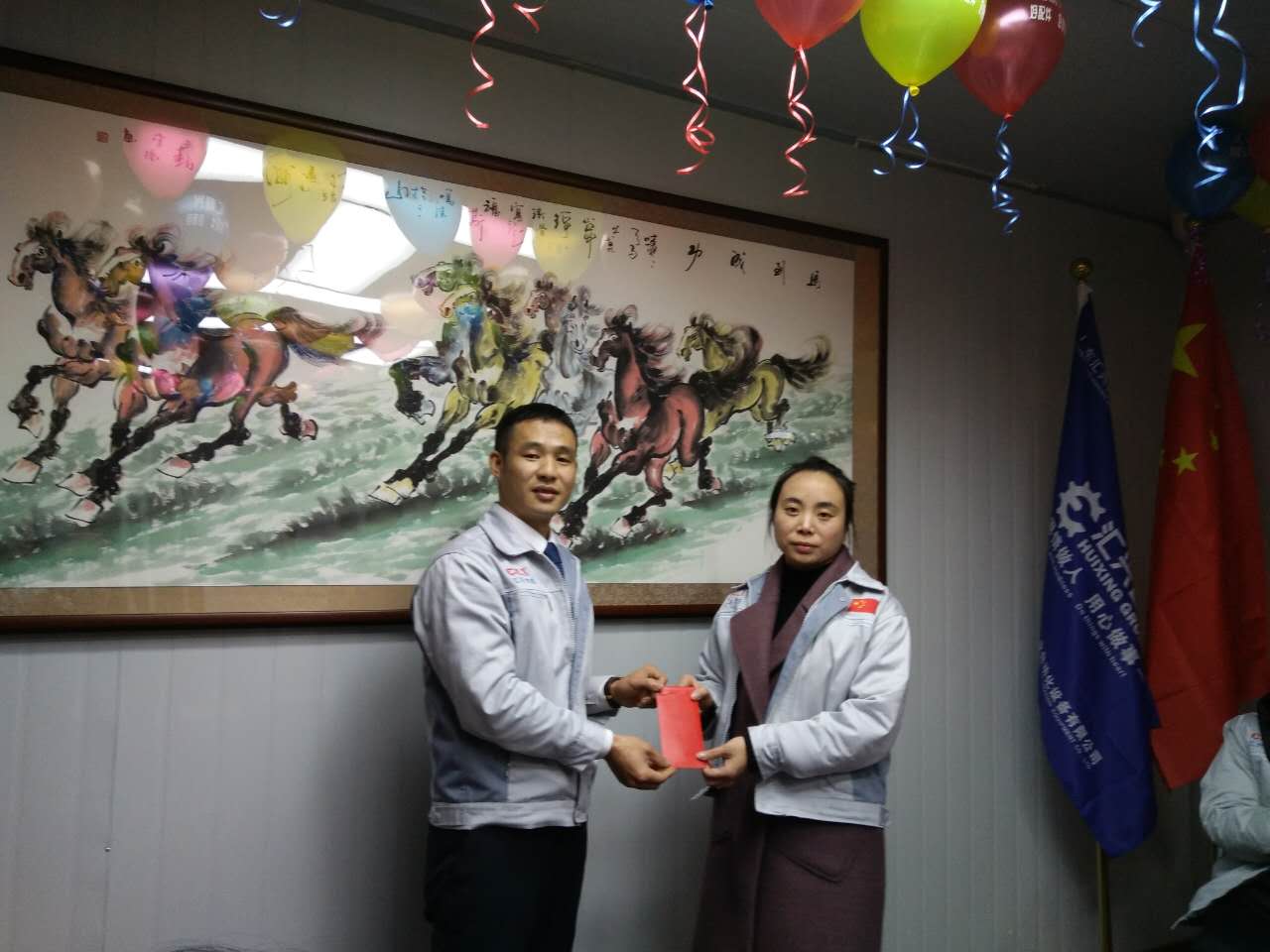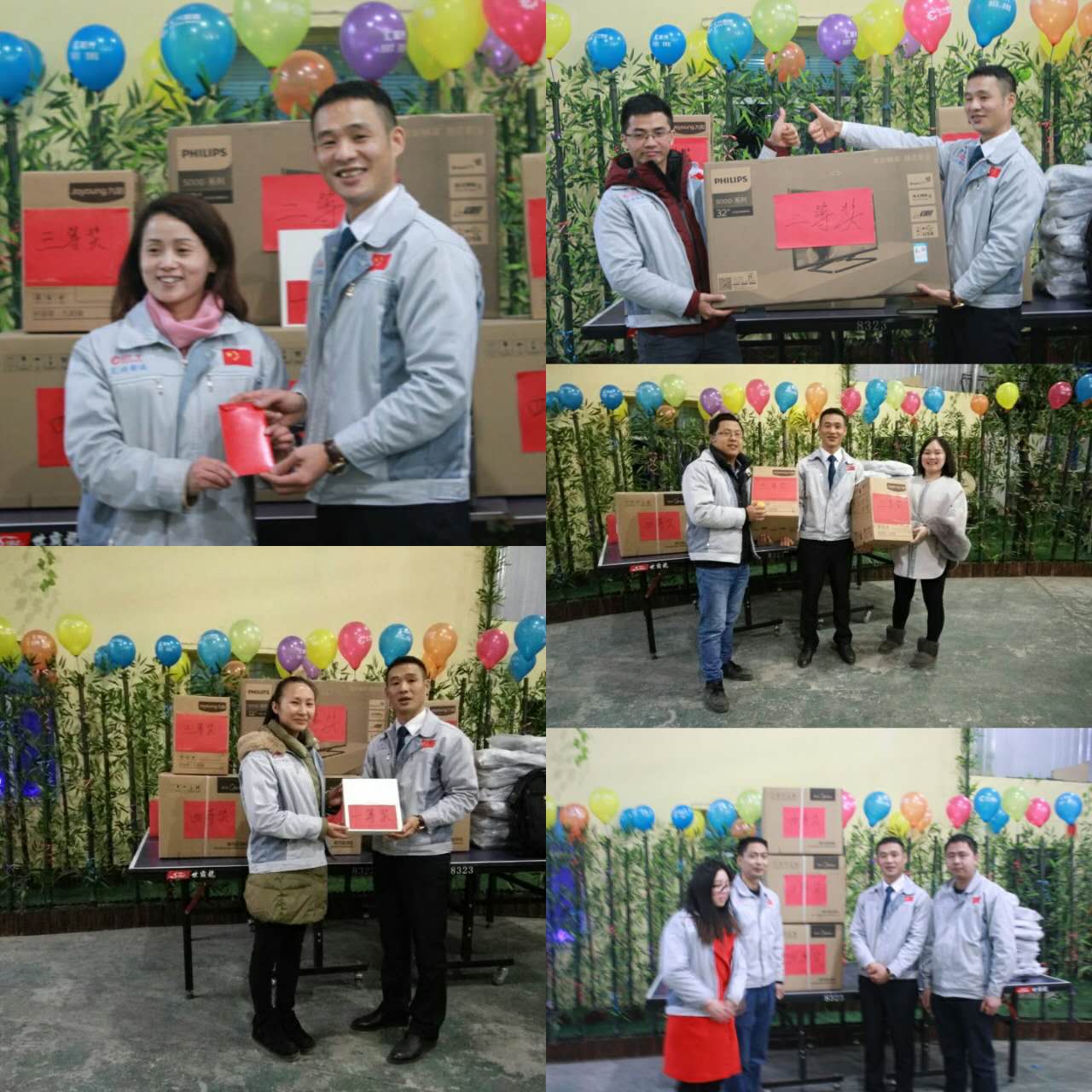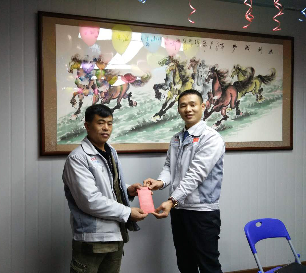 隨著年會的氣氛越來越濃厚,接下來由胡總經理一一頒發獎金及揭曉年會大獎獲者。獎金頒發:最佳付出獎、最佳責任獎分別是劉元平與石樂歡戰士,在此感謝兩位家人的奉獻與付出。 在你們愛家的同時匯利興這個家會更加愛你們。