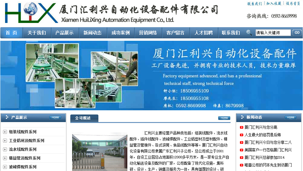 匯利興廈門公司注冊成立,這是匯利興集團(tuán)公司的里程碑,廈門公司位于同安區(qū)同安建材園48棟105-107號,業(yè)務(wù)聯(lián)系方式0592-8669998/8679998 傳真:0592-8679998手機:18506955108廖先生 18506955109 鐘小姐。 匯利興總公司位于廣東東莞,自建匯利興工業(yè)園12000平方,公司目前已相繼在江蘇昆山,廣東深圳,重慶、香港設(shè)立分公司。更好的服務(wù)、提供優(yōu)質(zhì)便捷的服務(wù),匯利興一直造福于自動化設(shè)備制造廠商、電子設(shè)備廠商,各類家用電器生產(chǎn)制造廠家,提供各類別質(zhì)優(yōu)廉價的生產(chǎn)線配件,整廠自動化生產(chǎn)線。匯利興一直領(lǐng)跑業(yè)界為客戶創(chuàng)造更高的價值,我們站在業(yè)界更高峰,匯利興不同凡響!