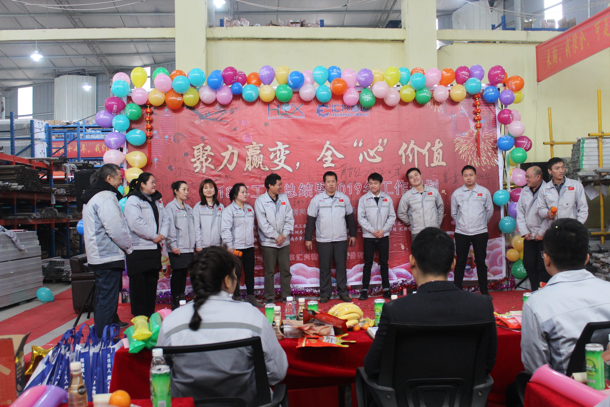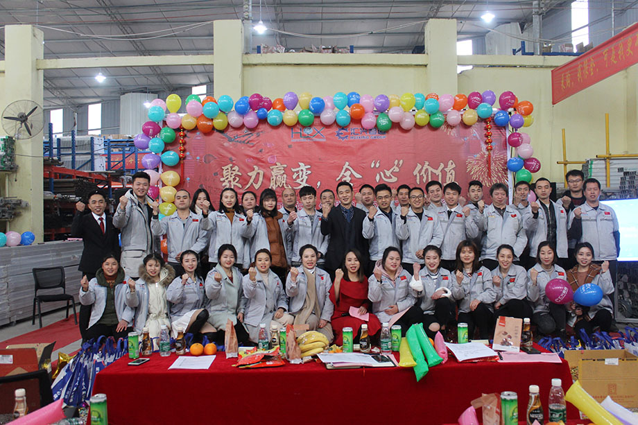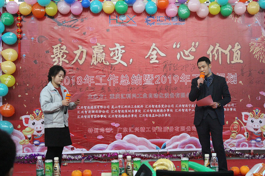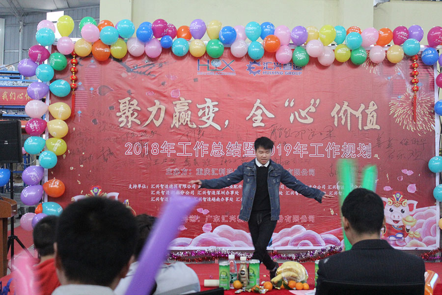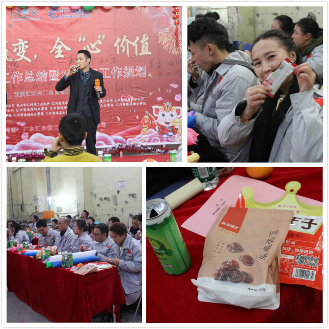 踏歌起舞辭舊歲,歡聲笑語迎新年。2019年1月19日下午,匯利興(重慶)公司在廠內(nèi)舉行了一場以“聚力贏變,全心價值”為主題的年終總結(jié)大會。會議主持人:石樂歡、熊學斌,參會人員:全體匯興家人。 56個民族56朵花,56個民族是一家,家人們以苗族竹竿舞進場,濃厚的民族氣息里不泛透露出匯興人愛國也愛匯興家。