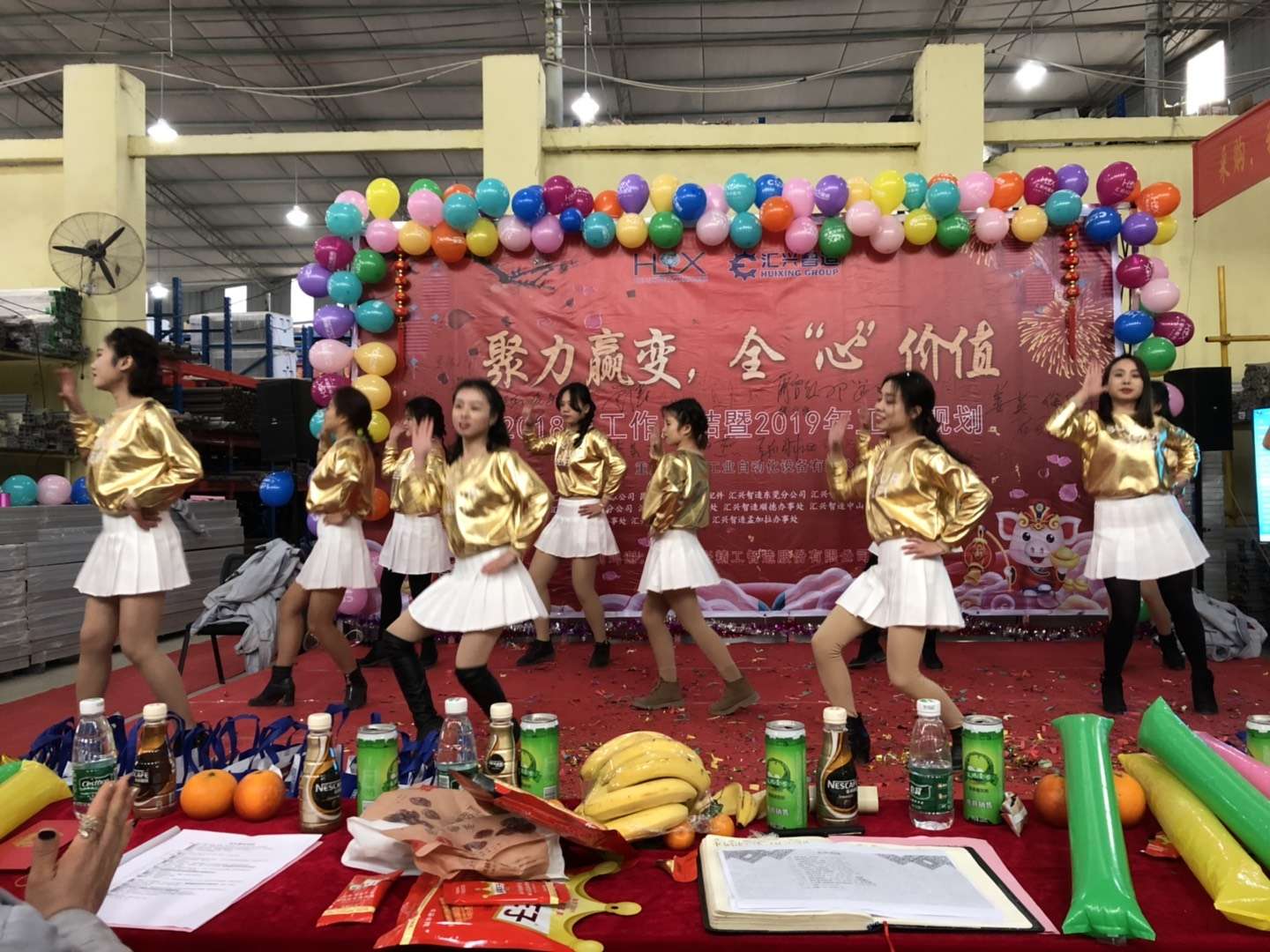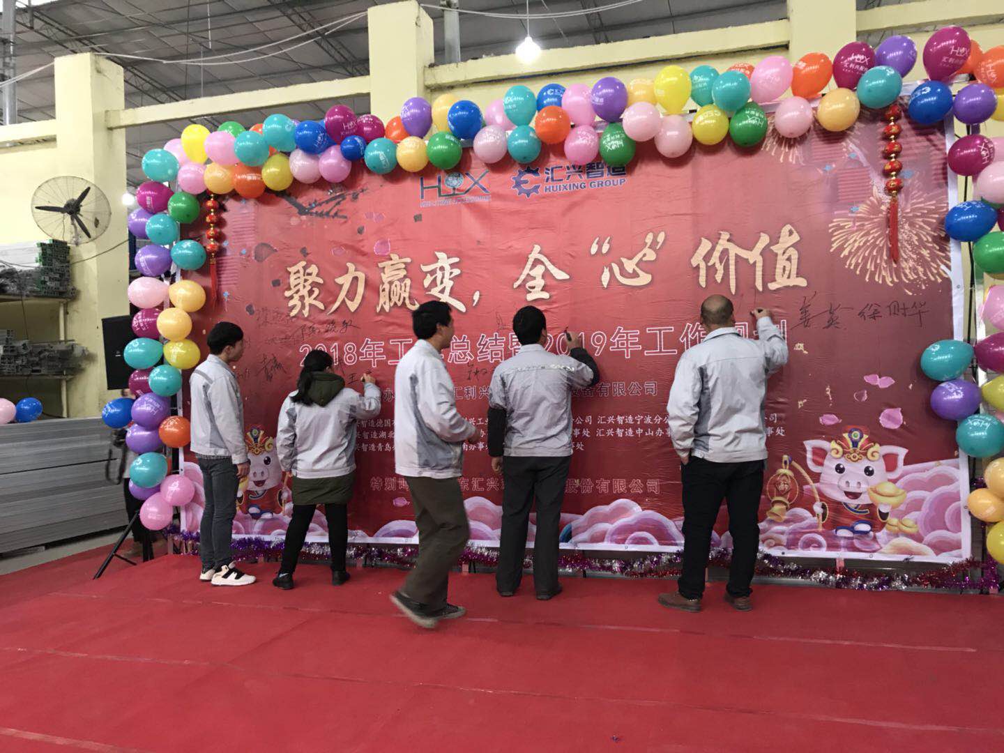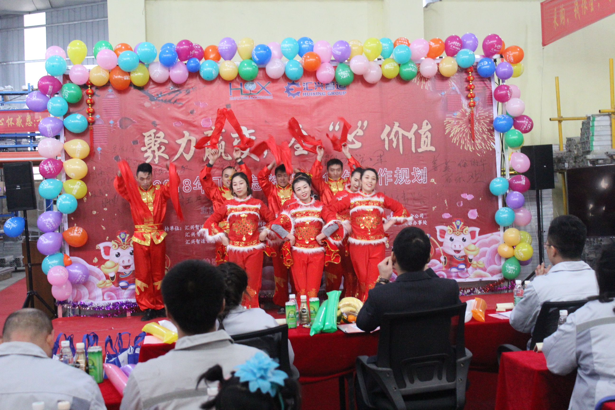 踏歌起舞辭舊歲,歡聲笑語迎新年。2019年1月19日下午,匯利興(重慶)公司在廠內(nèi)舉行了一場以“聚力贏變,全心價值”為主題的年終總結(jié)大會。會議主持人:石樂歡、熊學斌,參會人員:全體匯興家人。 56個民族56朵花,56個民族是一家,家人們以苗族竹竿舞進場,濃厚的民族氣息里不泛透露出匯興人愛國也愛匯興家。