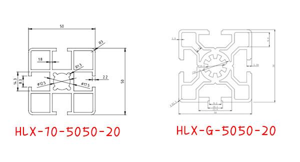 大家可以從上面兩個圖紙可以觀察出,兩款型材的不同之處,第一款為歐標(biāo)50502.0,第二款為國標(biāo)50502.0,其分別的重量為2.417KG/M 1.828KG/m,因此大家可根據(jù)小編給出的參數(shù)進(jìn)而推斷國標(biāo)5050-2.0的承重力度,應(yīng)該控制的范圍,不要超出本身型材的實際重量。