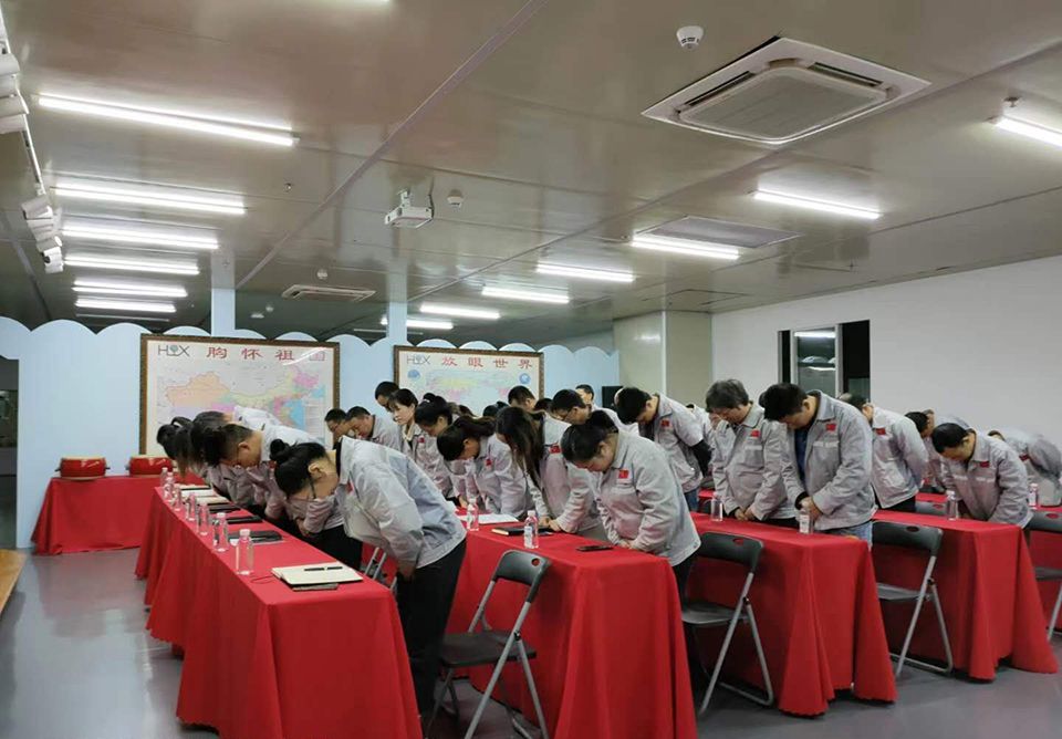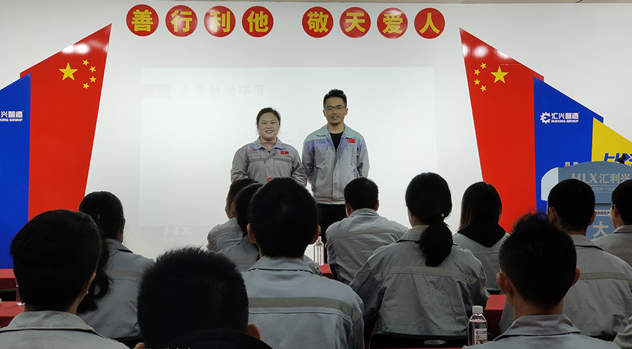 2020年10月17日13點45分,匯利興西南工廠全體員工在匯利興學(xué)校召開9月月度會議,由事務(wù)中心主管陳香草主持。 隨后二位女精英擊響士氣鼓,鼓舞士氣,鼓舞著戰(zhàn)友們奮勇前進,并以這種以評促進、你追我趕的“激勵文化”,潛移默化融于員工的日常工作中,同時也鞭策著員工們不斷爭先創(chuàng)優(yōu),推動企業(yè)發(fā)展的內(nèi)生動力,從而形成“我來干、搶著干、努力干”的工作作風(fēng)。現(xiàn)場鼓聲震天,士氣如虹。 會議第一項議程,企業(yè)文化展示。全體匯興人整肅衣冠對匯興人倍加推崇的“三道文化”(孝道、商道、人道)鄭重地鞠躬,莊嚴宣誓企業(yè)愿景:“成為行業(yè)優(yōu)秀的智能自動化產(chǎn)業(yè)鏈集成服務(wù)商”,企業(yè)使命:做受尊敬的好人,造受尊敬的產(chǎn)品,辦受尊敬的企業(yè),建受尊敬的平臺,企業(yè)精神“用情做人、用心做事”,團隊精神“忠誠團結(jié)、勤奮進取”,工匠精神:創(chuàng)于手、精于工、智于器、匠于心、品于行,行為準則:口中有德、目中有人、手中有技、心中有愛、行中有善,職業(yè)準則:對工作熱臉、對同事笑臉、對錯誤紅臉、對浪費黑臉、對榮譽爭臉。