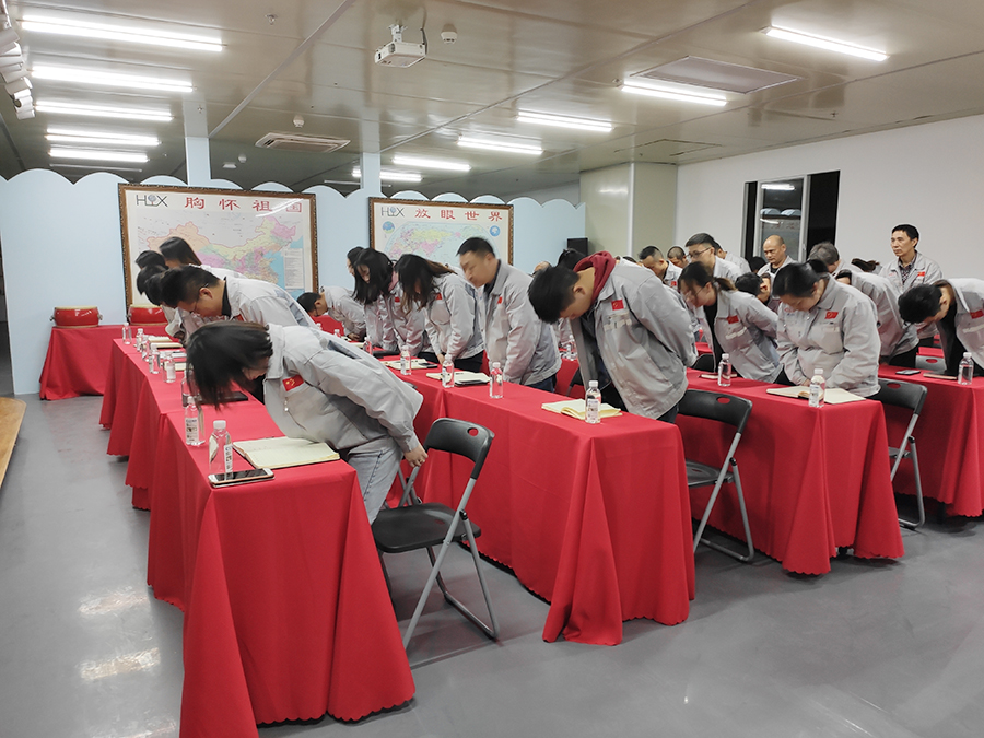 會(huì)議前,由二位高管擊響士氣鼓,鼓舞士氣,鼓舞著戰(zhàn)友們奮勇前進(jìn),并以這種以評(píng)促進(jìn)、你追我趕的“激勵(lì)文化”,潛移默化融于員工的日常工作中,同時(shí)也鞭策著員工們不斷爭先創(chuàng)優(yōu),推動(dòng)企業(yè)發(fā)展內(nèi)生動(dòng)力,從而形成“我來干、搶著干、努力干”的工作作風(fēng)。現(xiàn)場(chǎng)鼓聲震天,士氣如虹。 會(huì)議第一項(xiàng),企業(yè)文化展示。全體員工整肅衣冠,對(duì)倍加推崇的孝道、商道、人道鄭重鞠躬,莊嚴(yán)宣誓企業(yè)愿景:“成為行業(yè)優(yōu)秀的智能自動(dòng)化產(chǎn)業(yè)鏈集成服務(wù)商”,企業(yè)使命:做受尊敬的好人,造受尊敬的產(chǎn)品,辦受尊敬的企業(yè),建受尊敬的平臺(tái),企業(yè)精神“用情做人、用心做事”,團(tuán)隊(duì)精神“忠誠團(tuán)結(jié)、勤奮進(jìn)取”,工匠精神:創(chuàng)于手、精于工、智于器、匠于心、品于行等。