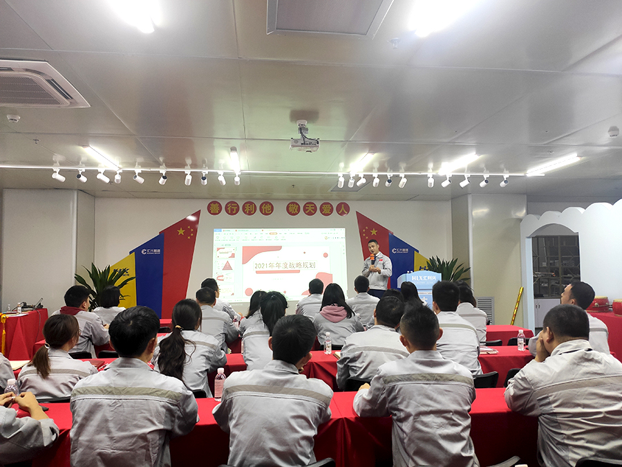 會(huì)議第五項(xiàng)議程,積分制度詮釋。積分制度開展將近一個(gè)月,在總經(jīng)辦的全力領(lǐng)導(dǎo)下,各部門持續(xù)且有效開展部門工作,充分調(diào)動(dòng)了各部門工作的積極性,提高公司在同行業(yè)競(jìng)爭力,增強(qiáng)公司團(tuán)隊(duì)內(nèi)部戰(zhàn)斗力,加強(qiáng)公司在行業(yè)內(nèi)的創(chuàng)新力,為公司五年戰(zhàn)略規(guī)劃提供原動(dòng)力。有效踐行了全體員工自上而下形成“我來干、搶著干、努力干”的工作作風(fēng),并進(jìn)一步向新入員工宣導(dǎo)積分管理制度一系列準(zhǔn)則。 會(huì)議第6項(xiàng)議程,胡總經(jīng)理講話。首先胡總經(jīng)理從八大要素來解析2021年年度戰(zhàn)略規(guī)劃(戰(zhàn)略基礎(chǔ)、年度業(yè)績目標(biāo)、人力資源保障、運(yùn)營、生產(chǎn)資源保障、綜合管理保障、財(cái)務(wù)資源保障、組織管理保障、人員配置系統(tǒng))等,進(jìn)一步提高公司在同行業(yè)競(jìng)爭力,增強(qiáng)公司團(tuán)隊(duì)內(nèi)部戰(zhàn)斗力,加強(qiáng)公司在行業(yè)內(nèi)的創(chuàng)新力,為公司五年戰(zhàn)略規(guī)劃提供原動(dòng)力;第二、胡總經(jīng)理談到:在2021年大市場(chǎng)環(huán)境下,各部門主管要認(rèn)真審視公司內(nèi)部優(yōu)勢(shì)和劣勢(shì)、強(qiáng)項(xiàng)和弱項(xiàng)的基礎(chǔ)上,對(duì)當(dāng)前行業(yè)的競(jìng)爭形勢(shì)和趨勢(shì)作出基本研判; 第三、貫徹公司對(duì)三個(gè)五年發(fā)展的要求和期望,結(jié)合公司運(yùn)營情況,要學(xué)會(huì)分析外部環(huán)境的劣勢(shì)和威脅、內(nèi)部的優(yōu)勢(shì)和發(fā)展機(jī)會(huì),確定公司發(fā)展方向,確保各項(xiàng)計(jì)劃順利落地; 第四、各部門管理執(zhí)行的各項(xiàng)工作、管理活動(dòng),包括任務(wù)制定、制度設(shè)立、日常管理,都必須始終不逾地圍繞戰(zhàn)略方針開展、貫徹和執(zhí)行; 第五、必須以“理順脈絡(luò)、根治病灶、提升效率”為目標(biāo),嚴(yán)格開展各項(xiàng)工作; 第六、匯利興耕耘行業(yè)20載,深耕西南10年,致力打造成為自動(dòng)化輸送設(shè)備配件行業(yè)的一站式采購工廠,專業(yè)為行業(yè)客戶提供標(biāo)準(zhǔn)化、定制化、個(gè)性化、模塊化的專用高端精密零部件,愿全體員工拿出眾人拾柴的心勁兒、勇毅篤行的穩(wěn)勁兒一同去開辟公司的未來!助力公司前進(jìn)!