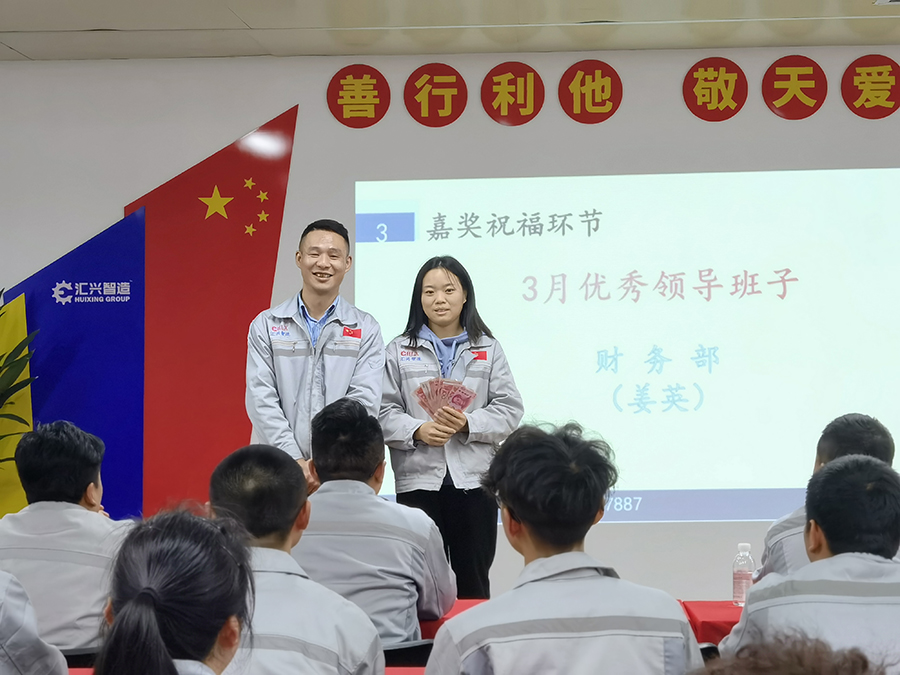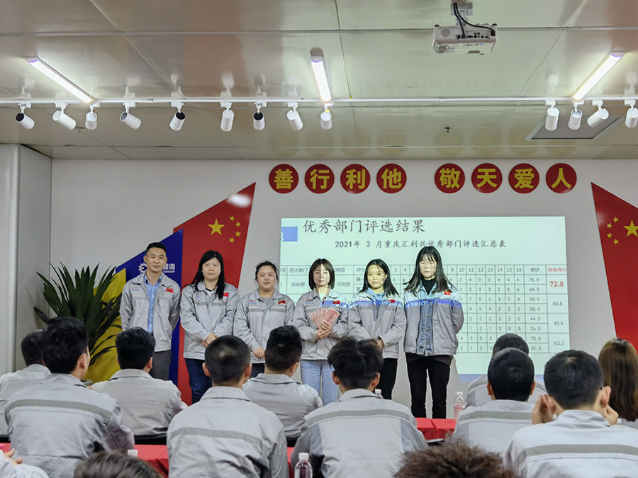 業(yè)精于勤,荒于嬉,行成于思,毀于隨。總結(jié)上個月工作情況,統(tǒng)籌下一個月工作計劃。匯利興西南工廠于4月9日18點40分,在匯利興學(xué)校召開三月月度會議。銷售主管劉文主持,匯利興西南工廠全體職員參會。會議開始,兩位高管敲響士氣鼓,敲響我們出征的號角,前進(jìn)的戰(zhàn)鼓,鼓舞著每位員工沖鋒打勝仗的決心和毅力。全體員工向企業(yè)三道孝道、商道、人道鄭重鞠躬,宣讀企業(yè)文化,并對本月新入員工進(jìn)行歡迎儀式。 春天是播種的季節(jié),同時也是催人奮進(jìn)的季節(jié)。為了表彰在三月份表現(xiàn)突出的優(yōu)秀個人、優(yōu)秀主管、優(yōu)秀部門,充分發(fā)揮引領(lǐng)示范作用,最大限度調(diào)動和激發(fā)員工向優(yōu)秀人員看齊、不斷提高工作的積極性和創(chuàng)造性。本次榮獲優(yōu)秀員工(曾濤、邵靜、鄧筵暉)、優(yōu)秀主管(姜英)、優(yōu)秀部門(綜合部)。自成立以來,公司大力宣導(dǎo)我來干、努力干、拼命干的工作作風(fēng),積極鼓勵無私奉獻(xiàn)、恪盡職守的三好匯興人,并堅持打造一支有愛、有力量、有活力的團(tuán)隊。
