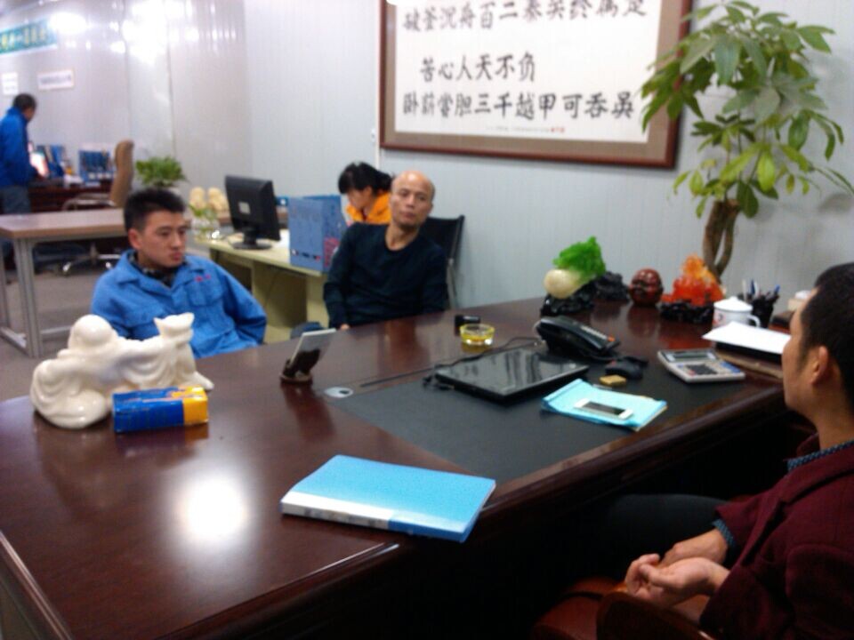 客戶親來公司洽談,胡總親自接見并和客戶一起制定產品制造方案。