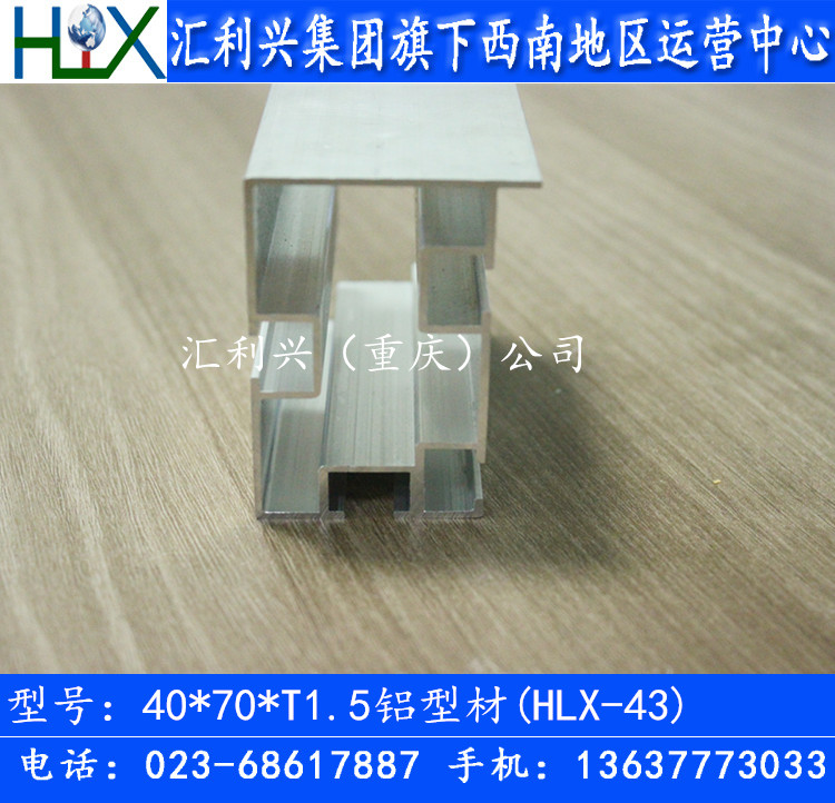 匯利興產品之皮帶線鋁型材系列,40*70*t1.5鋁型材(編號:HLX-43);又名帶護邊40*70鋁型材,每支6.02米長,壁厚1.5,米重1.428kg、槽寬8.3mm, 此款鋁型材常使用在簡易生產輸送線、無燈架流水線,配合在此款4070鋁型材常用配件有PVC輸送皮帶,機頭機尾動力滾筒、鍍鋅滾筒等一系列皮帶線常規材料。
