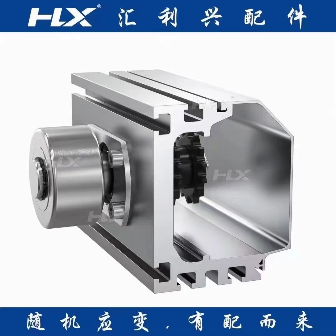 懸臂式鏈傳動:采用86135鋁型材,鏈輪傳動,鍍鉻滾輪鑲嵌銅套實現(xiàn)積放功能,負載2000kg/米,最大負載速度15M/min, 輪距139、151.5、177、202.5可選,適用托盤寬度300-1200mm,線體長度范圍1000-6000mm, 高度根據(jù)需求定制