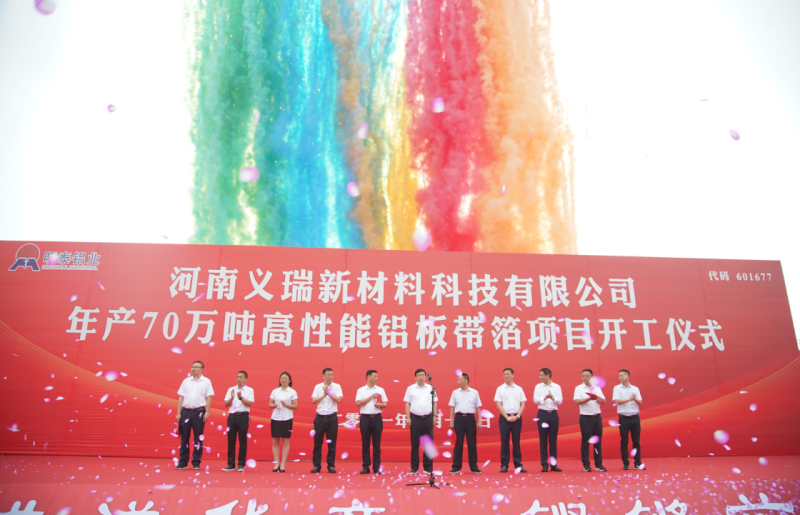 7月18日,明泰鋁業(yè)舉行河南義瑞新材料科技有限公司年產(chǎn)70萬(wàn)噸高性能鋁板帶箔項(xiàng)目開工儀式。